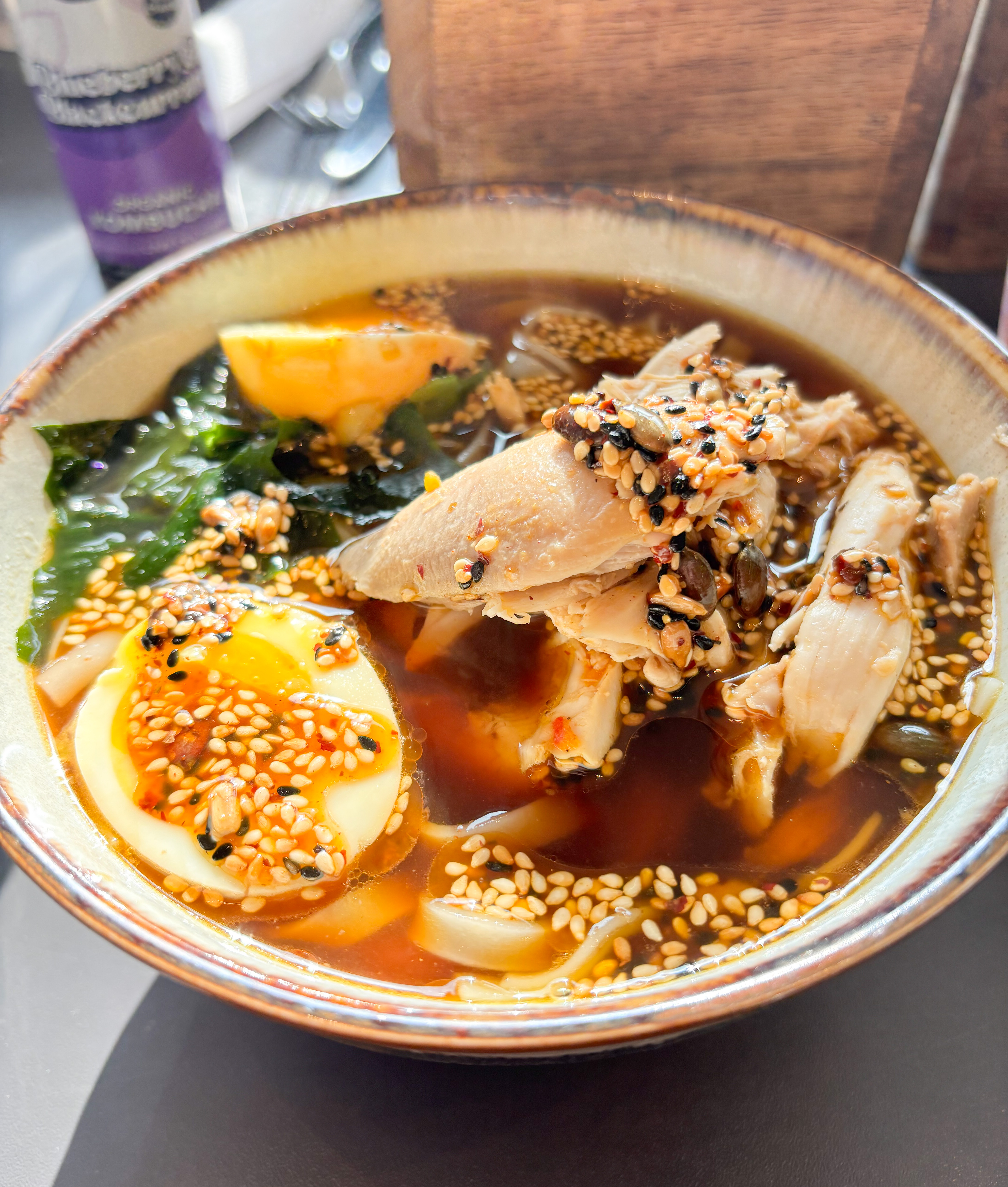 Fairmental in Ballsbridge is a small but mighty place, specialising in ferments of all kinds. While their pickles and ferments line their shelves, they also have a menu for those who might like to eat in. The bone broth from the afternoon menu comes with chicken, egg noodles, seaweed, a soft boiled egg, and rayu. It’s a bowl of warmth and solace on a rough day, whilst also being a dose of nutrition.